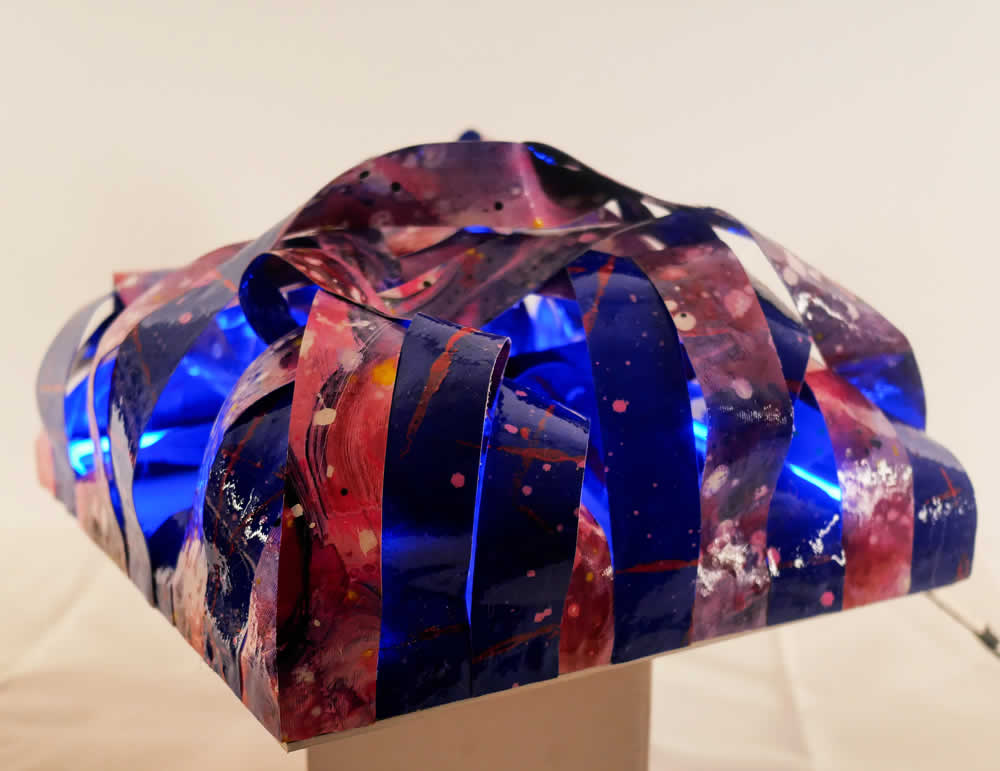 Bestehende Werke werden zerschnitten – die in Streifen fragmentierte Kunstwerke verlieren ihre ursprüngliche Ordnung und werden in eine neue, räumliche Struktur überführt.