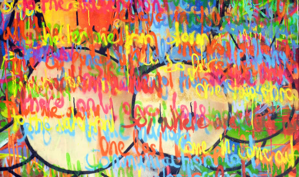 „Take me away“ ist ein visuelles Rauschen aus Farbe, Schrift und Emotion.